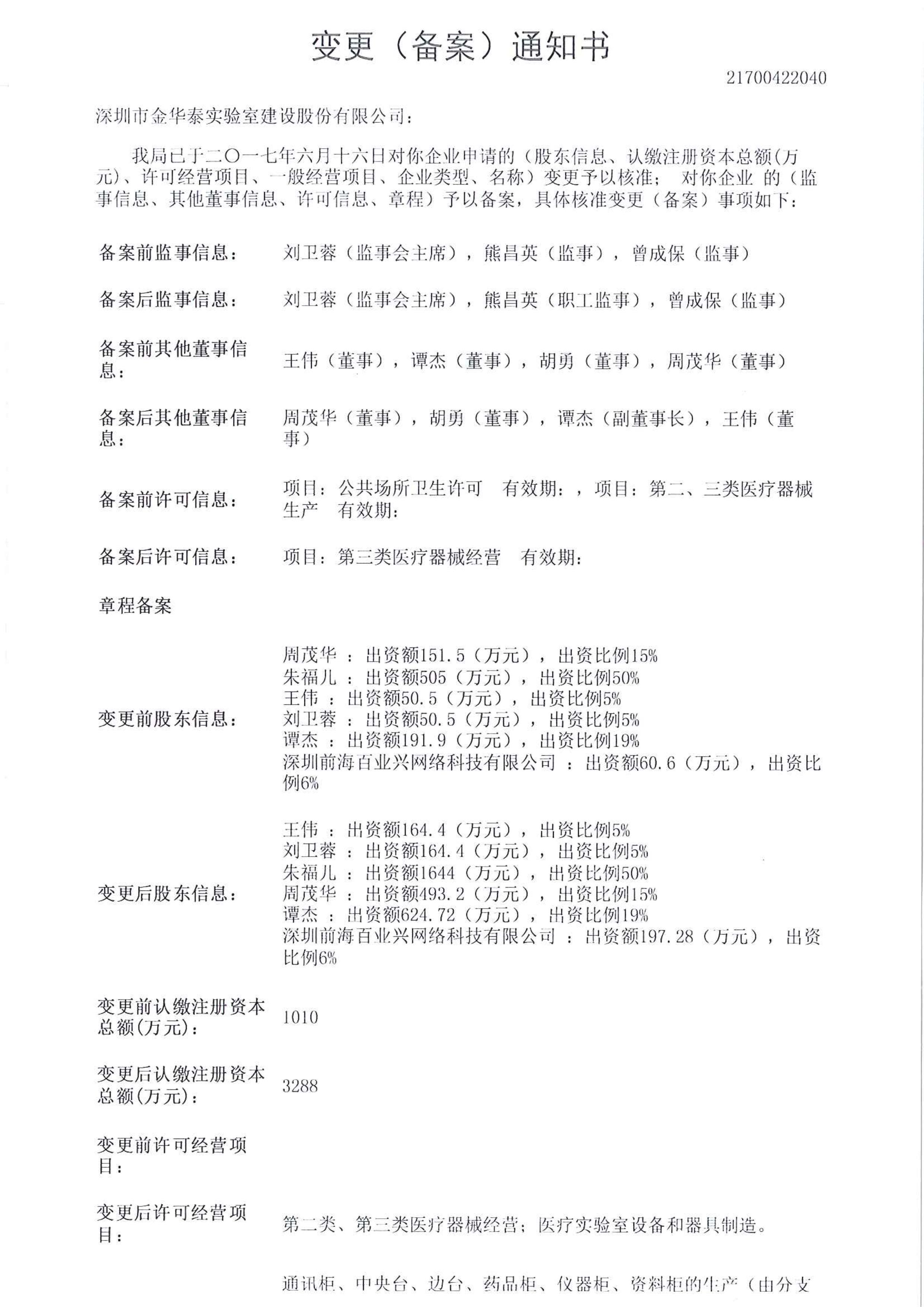 深圳市金華泰實驗室建設(shè)股份有限公司完成新一輪增資擴(kuò)股,正式更名為:深圳市金華泰實驗室建設(shè)股份有限公司,金華泰人將繼續(xù)保持服務(wù)金牌體系,為客戶提供最專業(yè)的實驗室解決方案,打造實驗室精品項目工程!專業(yè)從事安全、智能實驗室整體解決方案提供商、國家級高新技術(shù)企業(yè)!!